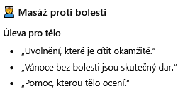 - využít lze postupně ,např. si objednat 4 hodinové masáže, 2 hodinovou celého těla (tzv. holistickou), nebo i darovat (třeba část poukazu) jako dárek